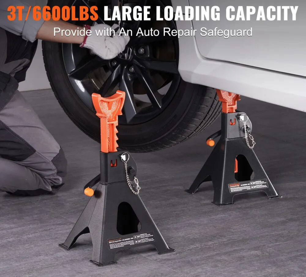 Handle A Big Load: Are you dealing with tough lifting jobs? these jack stands have a 3-ton/6600 lbs loading capacity and can raise SUVs, pickups, cars, UTVs, and ATVs. They conform to CE standards, ensuring your safety during use. Feel confident during vehicle repairs!