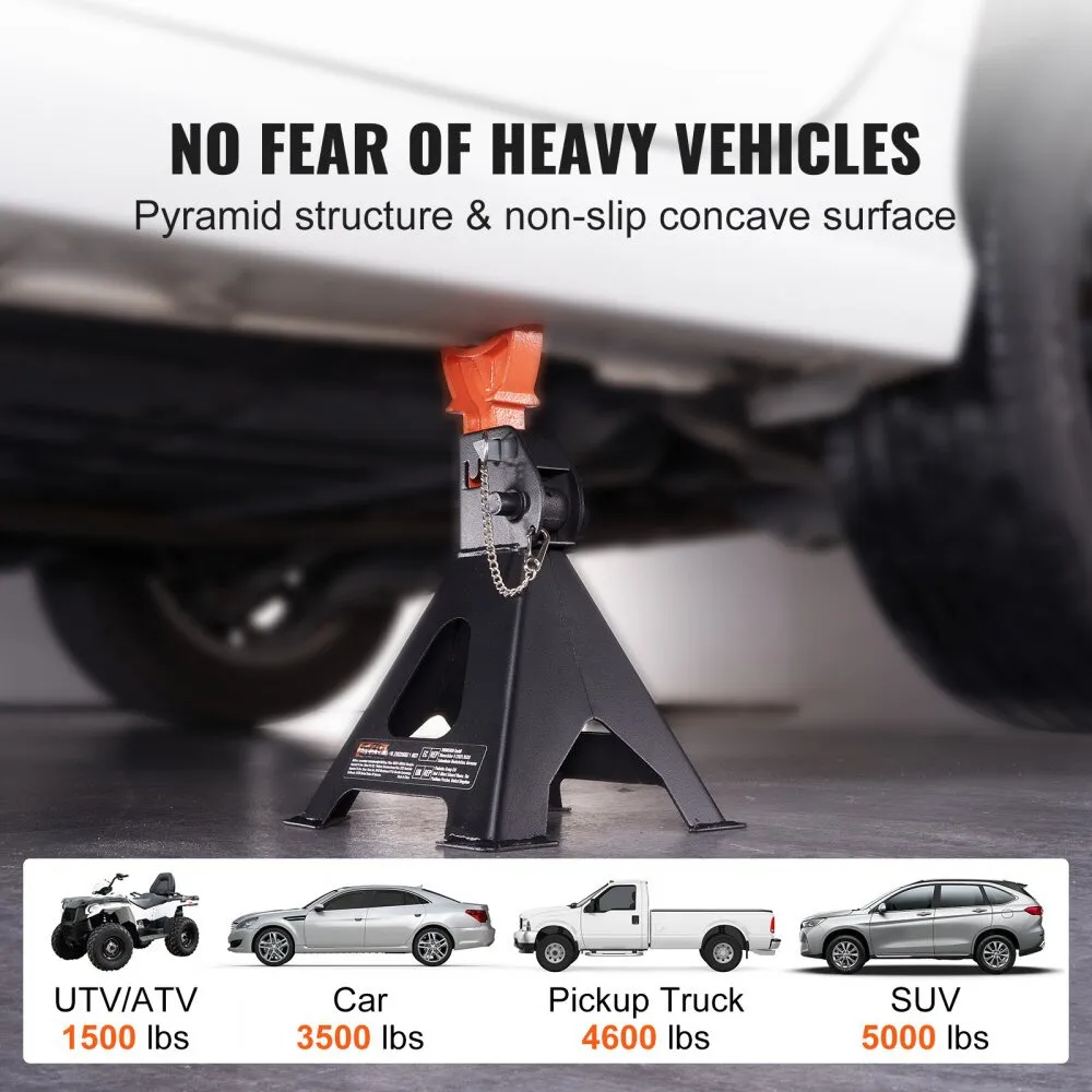 Give Your Vehicles a Lift: Our jack stands now have a powerful load-bearing area that is four times larger, thanks to the wide pyramid base and triangular foot pad! Additionally, the notched saddle top of the ratchet bar perfectly fits the edges of the vehicle, providing a stable and secure grip.